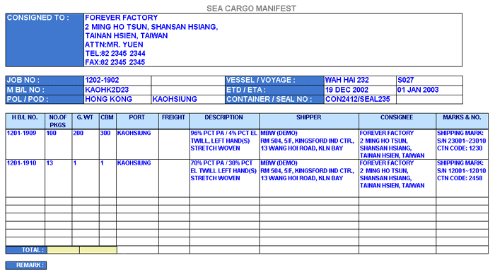Sea Manifest